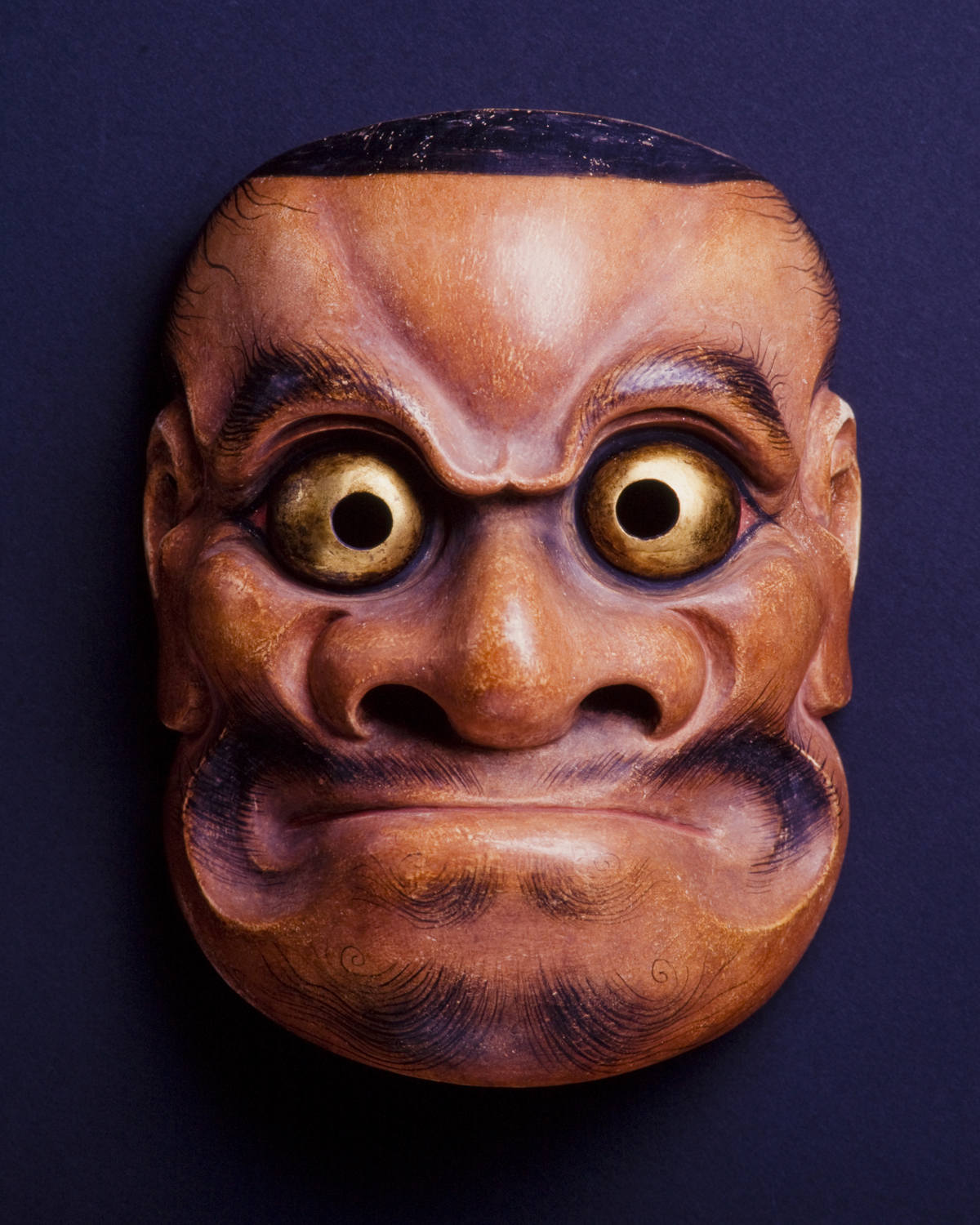 The name of the mask is derived from its craftsman, Chorei, who lived the end of Muromachi period. The mask is based on the style of Beshimi, but the facial expression is giving us the impression of a humorous man with the full of compassion. The mask is used for the role of Chohan Kumasaka, who is a master thief.