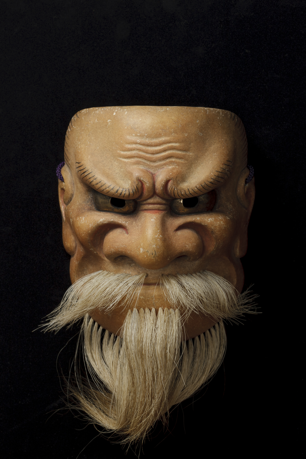 The mask is used for the special performing of Kurama-tengu or Zekai. The mask is used for a role of the elder leader of Tengu (long‐nosed goblin).