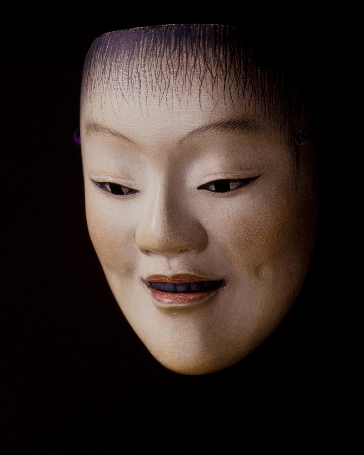 少年の面、もともとは童子の面と同一であるが、慈童の方がより可愛らしく妖精的。