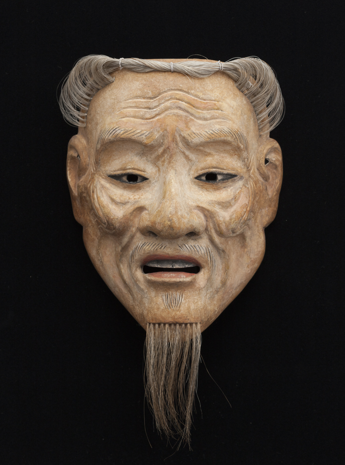柔和で端正な尉の面 後シテで舞をまう曲に使われる
