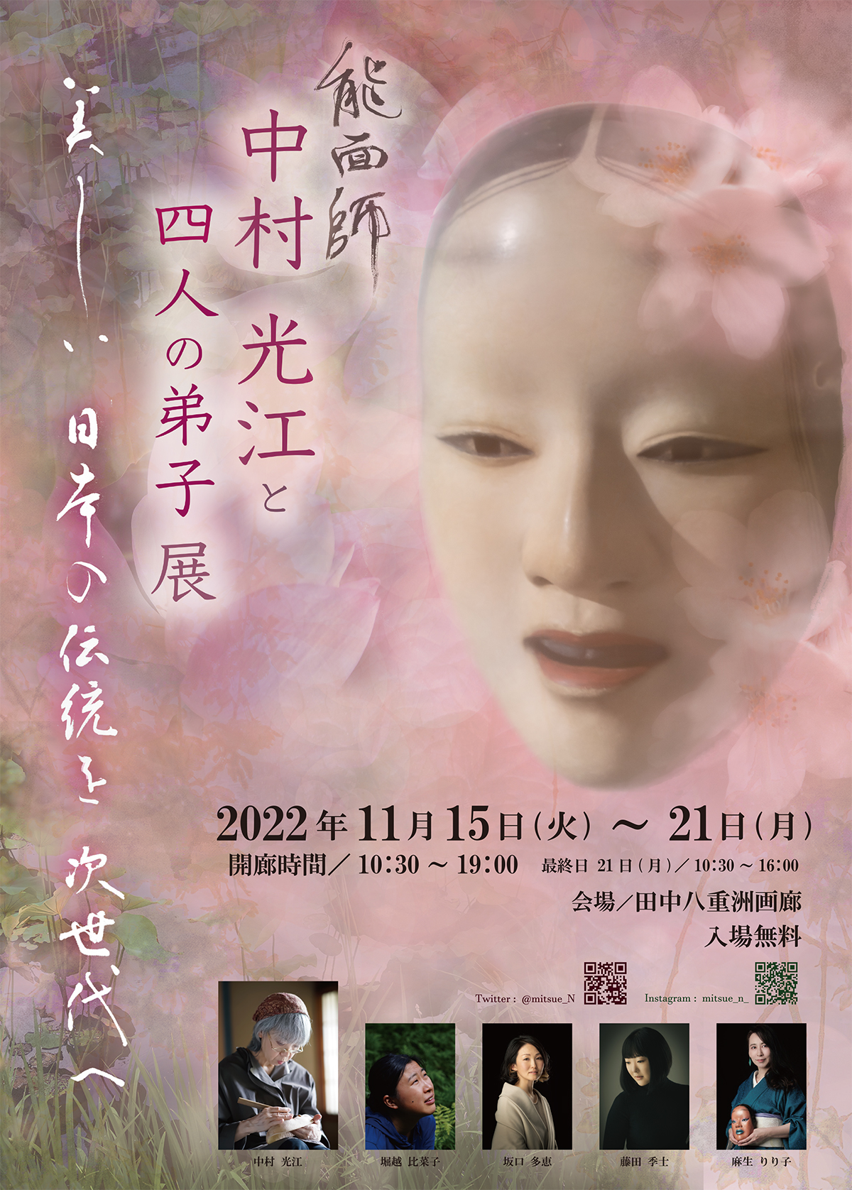 2022年11月、東京で弟子たち四人と大きな展覧会を催します。140を超える能面が出品されます。 若い人たちの工夫を盛り込んだ情熱あふれる会になると思います。